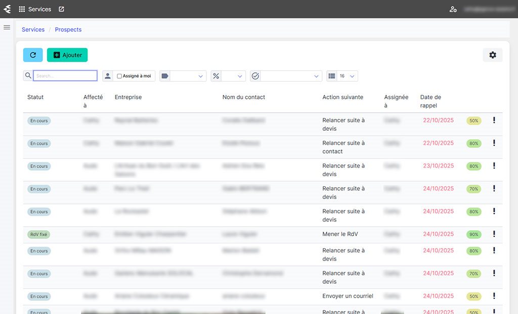 Visualisation et organisation optimales des prospects, rappels des tâches de suivi